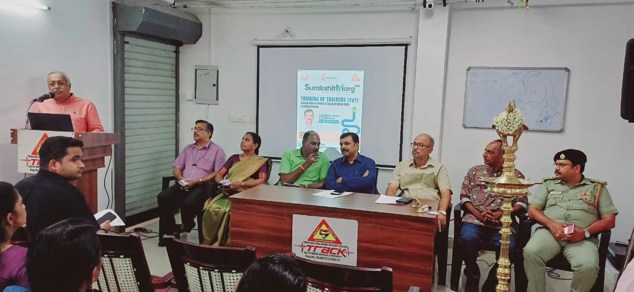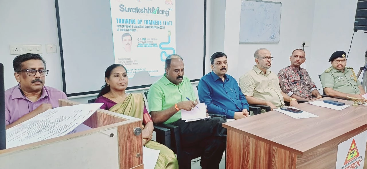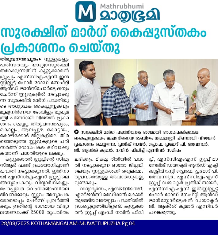 Surakshitmarg 2.0 being inaugurated by Hon. Chief Minister of Kerala Shri. Pinarayi Vijayan at his Office in the presence of Shri. Naveen Philip, MD, Kuttukaran Group; Shri. Pramod P. Thevannoor, SCMS Group Managing Director and Executive Trustee; Shri. Prathik Nayar, SCMS Group Director; Shri. G. Adarsaumar, Director, SCMS Institute for Road Safety and Transportation.